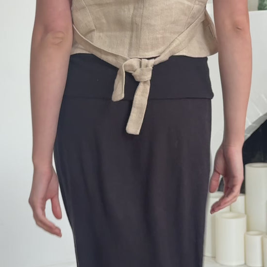 Introducing our Hemp Herringbone and twill Annie Waistcoat, the perfect combination of style and sustainability, with the option to adjust the ties in the back. Made from durable hemp material in a unique herringbone or twill pattern, this waistcoat will keep you looking sharp while reducing your carbon footprint. A must-have for any eco-conscious fashion enthusiast!