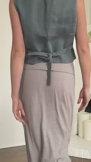 This black or grey maxi skirt in environmentally-friendly Hemp organic cotton jersey is both chic and comfortable. The high waist is versatile, allowing you to wear it as is or rolled down onto your hips. For a summer look, pair it with our playful Hemp t-shirt in stone or our trendy Hemp Linen Kimono top.